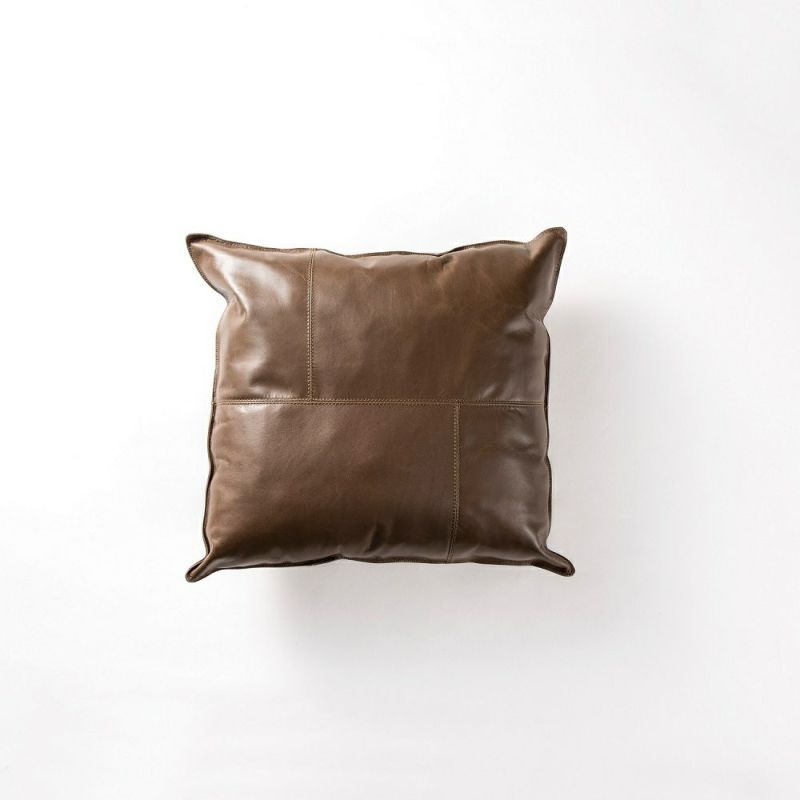 艶のあるレザーを使用したラグジュアリーなレザーミニクッション。
