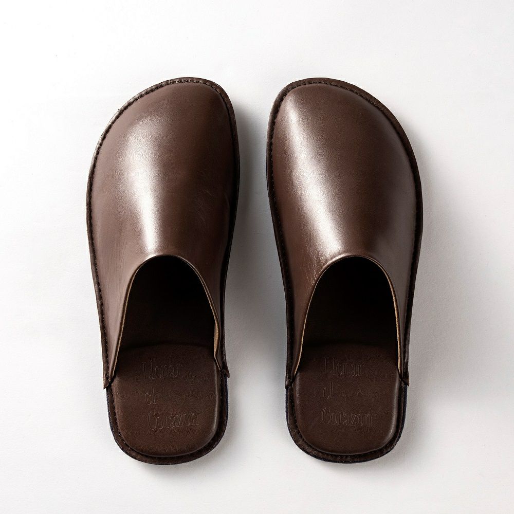 シンプルで高級感溢れるスムースレザールームシューズ。