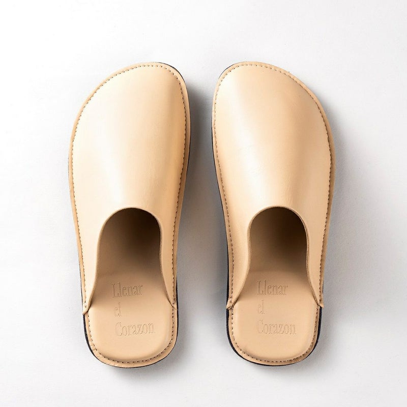シンプルで高級感溢れるスムースレザールームシューズ。