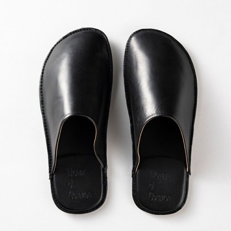 シンプルで高級感溢れるスムースレザールームシューズ。